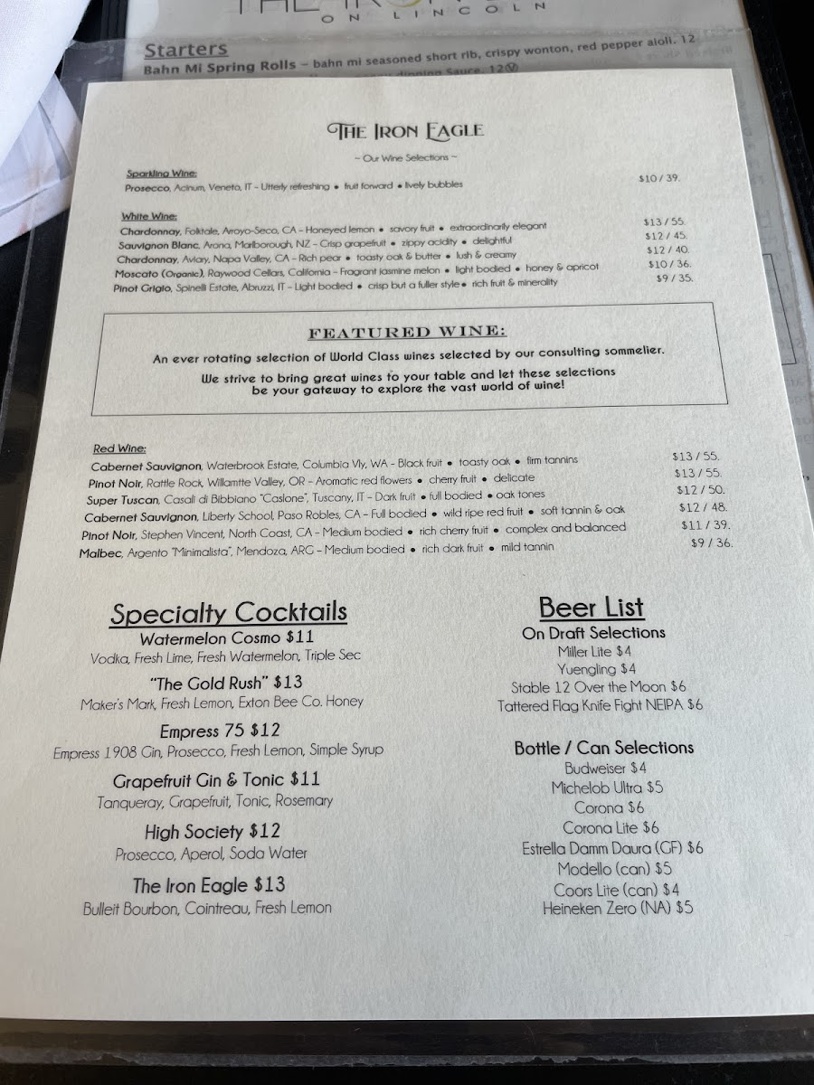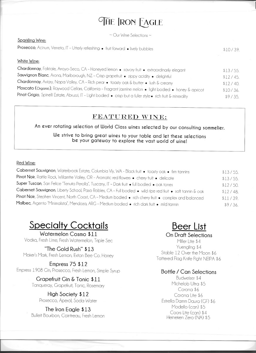 At The Iron Eagle On Lincoln Bar & Grille, located in Coatesville, PA, you’ll find a menu that mixes comfort and creativity in every dish. Whether you’re stopping in for a casual lunch or enjoying a laid-back dinner, there’s something for everyone here. From hearty sandwiches and classic pub fare to mouthwatering entrées, every bite promises to satisfy. And don’t forget about the drink selection-there’s a wide variety of craft beers and specialty cocktails to complement your meal. With its inviting atmosphere and friendly service, The Iron Eagle On Lincoln Bar & Grille Menu makes it easy to unwind and enjoy a great meal with friends or family.